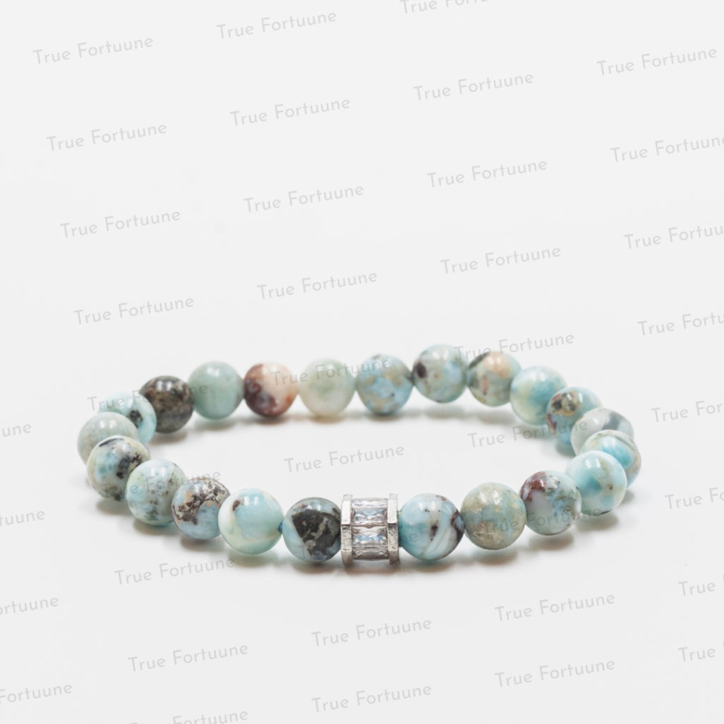 Experience the tranquil essence of Larimar with our captivating bracelet. Known as the 'Dolphin Stone,' Larimar embodies serenity, tranquility, and communication. This soothing crystal invites calmness, aids in self-expression, and fosters a sense of inner peace.