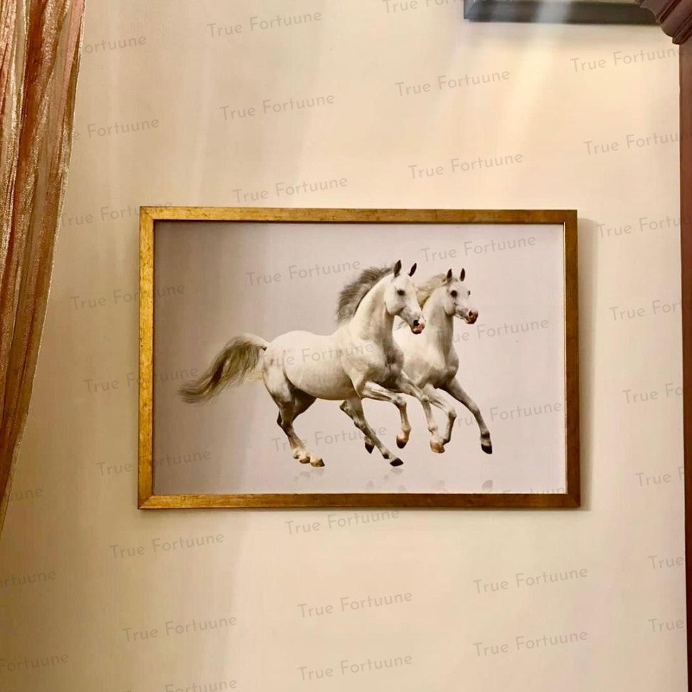 This painting holds great significance in Vastu Shastra and Feng Shui, symbolizing power and success for all family members. The white color represents purity, positivity, and good fortune, while horses embody strength, vitality, and courage. To maximize its benefits, place this painting on the south or east wall of your home or office.