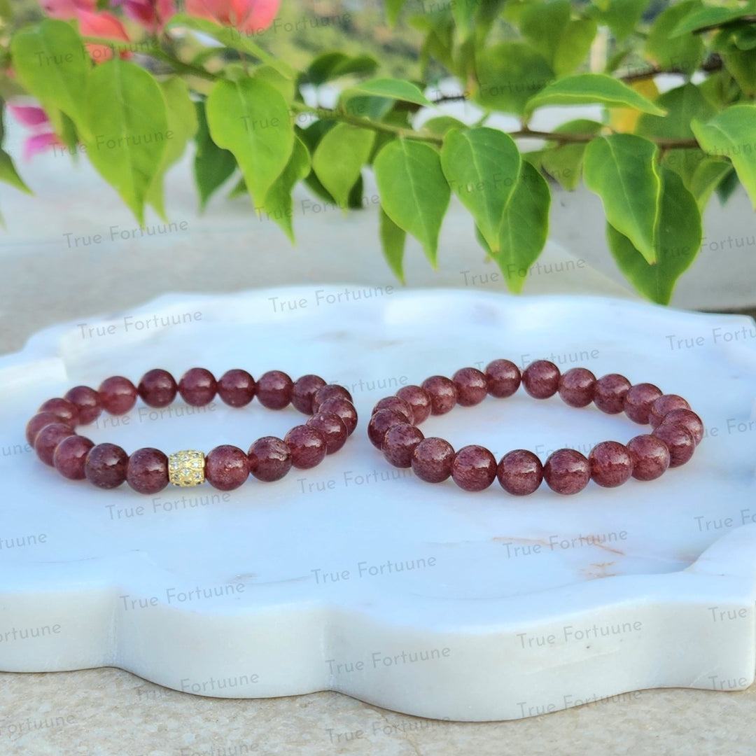 Indulge in the nurturing energy of our Strawberry Quartz Bracelet, symbolizing love, harmony, and inner balance. Each bead is infused with the gentle energies of Strawberry Quartz. Known as the "Stone of Inner Love," Strawberry Quartz radiates love and harmony, promoting emotional balance and inner peace. Adorn yourself with this bracelet to open your heart to love, foster harmony, and embrace inner balance.